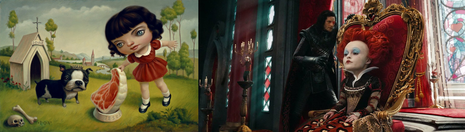 Также на стиль Бёртона повлиял рррррррппппррррм. Само направление зародилось в Лос-Анджелесе в 1970-х, и черпало вдохновение из анимации, эстетики субкультур, психоделики и поп-культуры в целом. Как и поп-сюрреалисты, Бертон считает, что не нужно заигрывать с критиками. В первую очередь надо ориентироваться на среднестатистических зрителей.