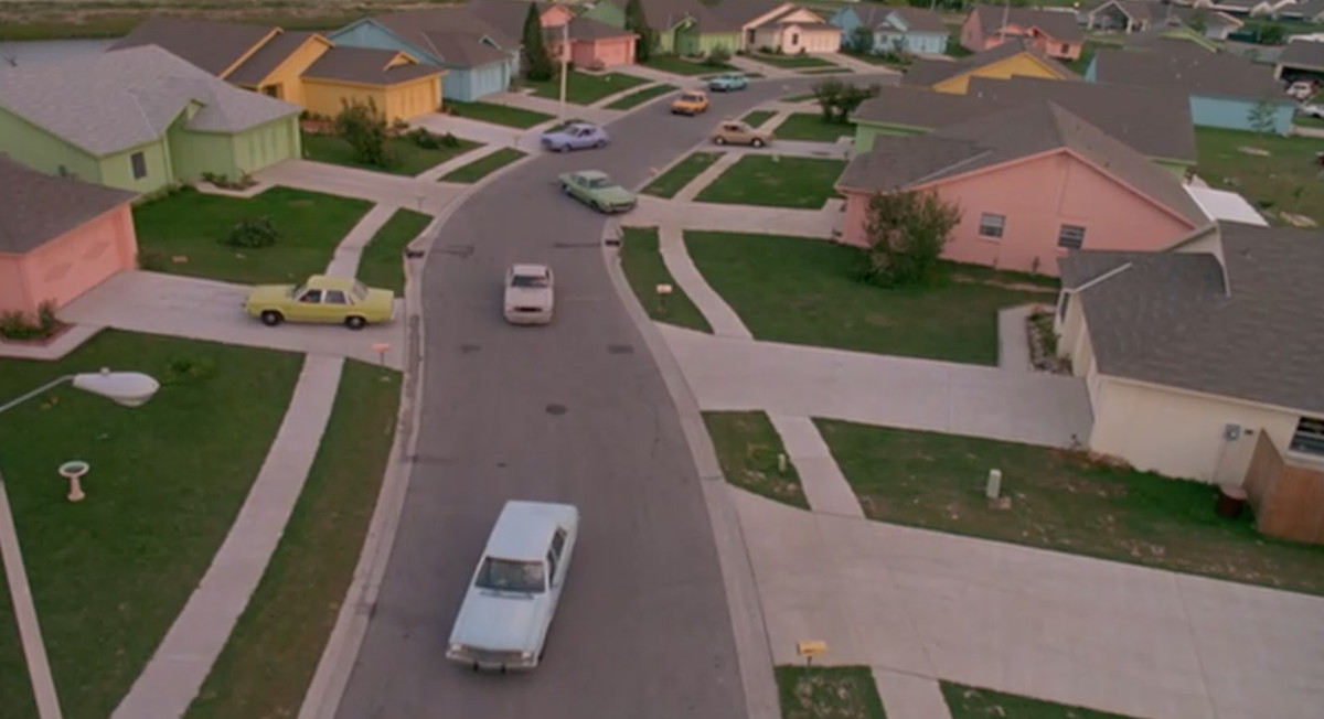 Какие же цвета использует Бёртон? Тут нельзя всё определить точно. Где-то цвета резко контрастируют друг с другом: показаны темные и яркие цвета одновременно. Так, цвета в мире Бёртона обозначают конфликт до его драматургического введения: например, в «Эдвард Руки-Ножницы» милый и кукольный городок контрастирует с мрачным главным героем.